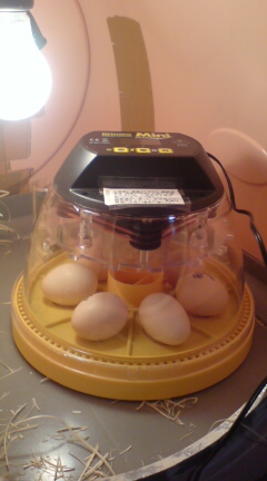産むわ売れんわで、再び孵卵器(ミニアドバンスです)に4個セットしました!