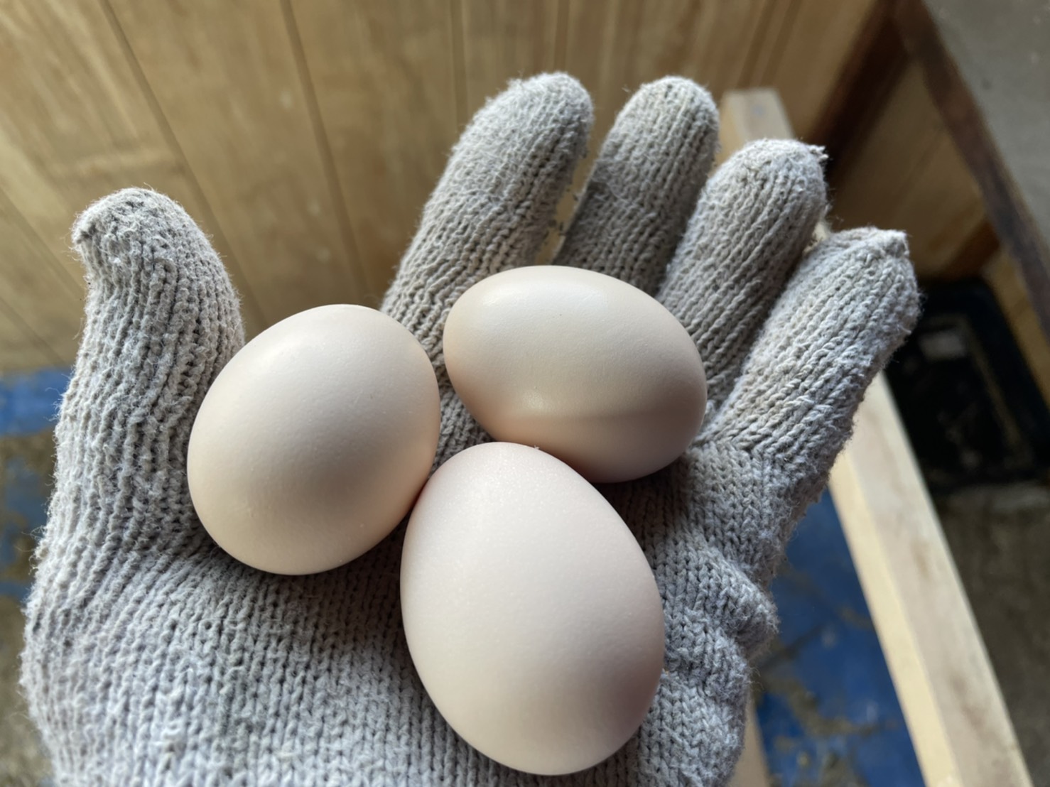 鶏舎の出荷用卵は3個に。