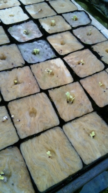 トマトのチェックしに行くと横に植えてた水菜が成長&発芽していました。